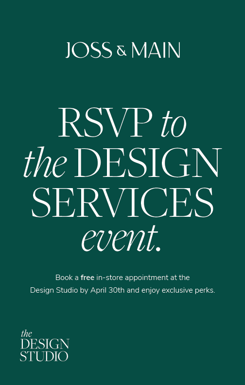 Integrated campaign across print collateral and digital marketing channels for an in-store event in April 2023, promoting Joss & Main’s complimentary design services program.
